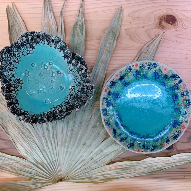 《 沖縄の海を思わせる美しいやちむんの青 》